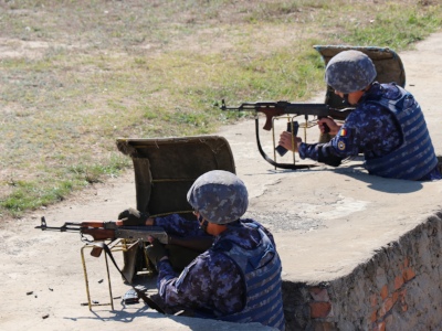 Elevii de anul I, față în față cu ținta, la prima lor ședință de tragere în poligon