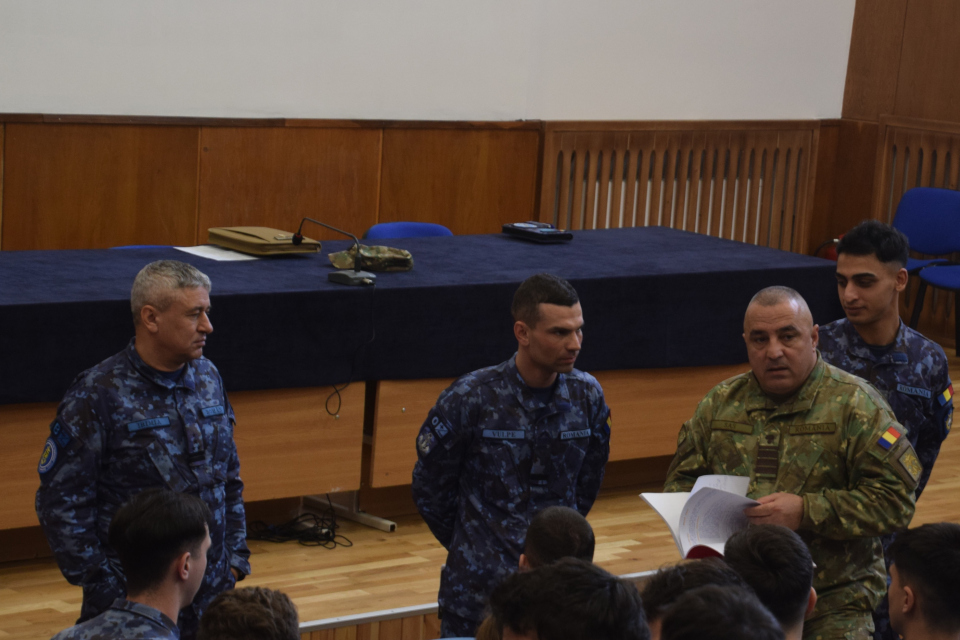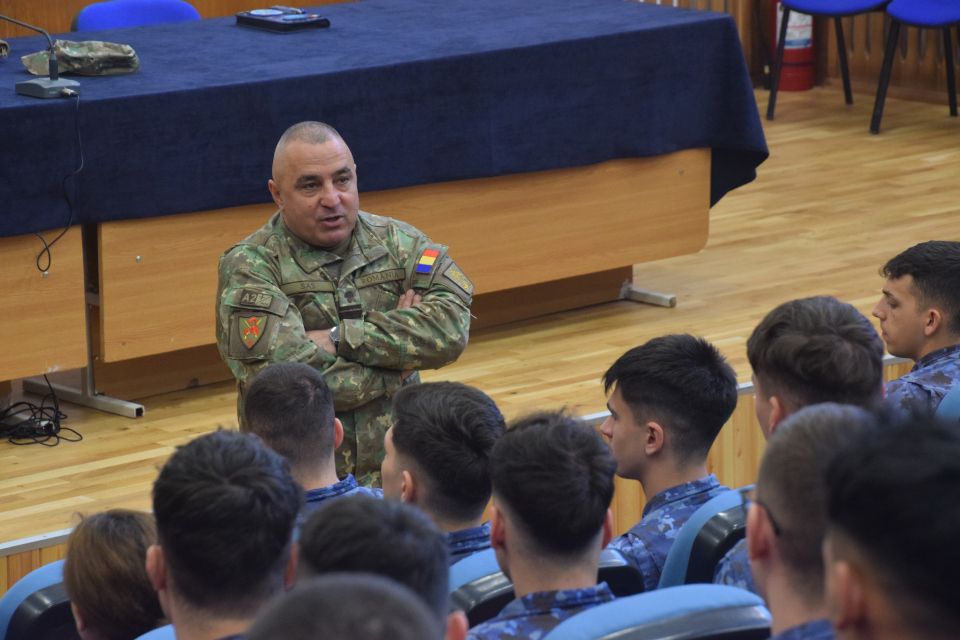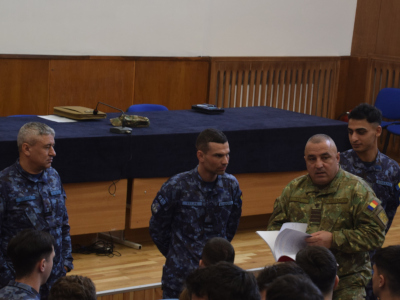 Elevii Școlii Militare de Maiștri Militari a Forțelor Navale s-au întâlnit miercuri, 25 februarie, cu subofițerul de comandă al Statului Major al Apărării, plt. adj. pr. Florea Sas. În calitate de reprezentant al celei mai înalte structuri de conducere din Armata României, acesta a inițiat un dialog cu elevii militari în dorința de a le afla nivelul de pregătire teoretică, dar și pentru a identifica vulnerabilitățile din procesul de formare profesională inițială a noilor promoții de maiștri militari de marină.