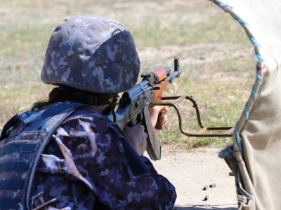 Elevii de anul I, față în față cu ținta, la prima lor ședință de tragere în poligon