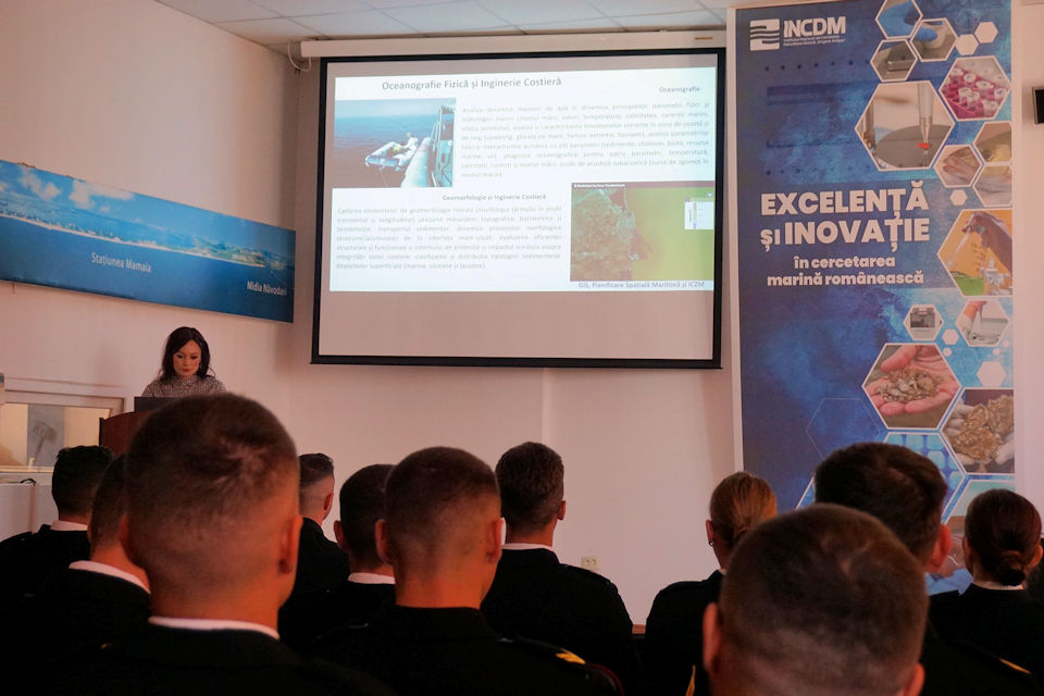 O parte dintre specialiști, din departamentul de Oceanografie Fizică – domeniu cu multe puncte comune cu viitoarea profesie a elevilor – le-au prezentat echipamentele moderne de cercetare și infograficele rezultate din activitățile de teren. Pentru elevii militari, a fost o întâlnire revelatoare cu latura științifică a mării, cea care completează cunoașterea practică dobândită în procesul de formare militară.