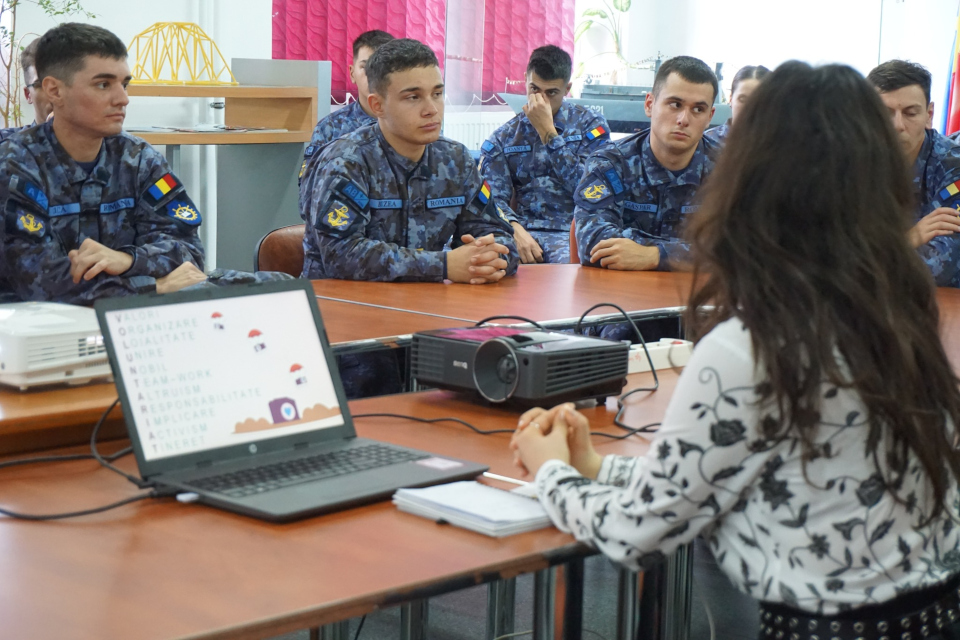 Invitații le-au vorbit tinerilor militari despre rădăcinile voluntariatului și despre sensul real al acestei activități, despre implicare, responsabilitate și capacitatea de a vedea dincolo de propriile nevoi. S-au discutat tipuri de proiecte de voluntariat, exemple concrete, rolul empatiei și, mai ales, abilitățile pe care le poți dobândi atunci când alegi să te implici: de la comunicare și lucru în echipă, până la vorbit în public și gestionarea situațiilor neprevăzute.