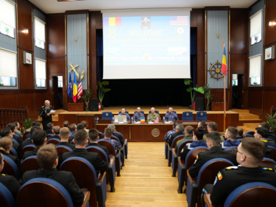 Întâlnirea s-a încheiat cu o sesiune de întrebări și răspunsuri, în care elevii și studenții militari români au aflat detalii despre diferențele și asemănările dintre sistemele de lucru ale US Navy și Forțelor Navale Române.
