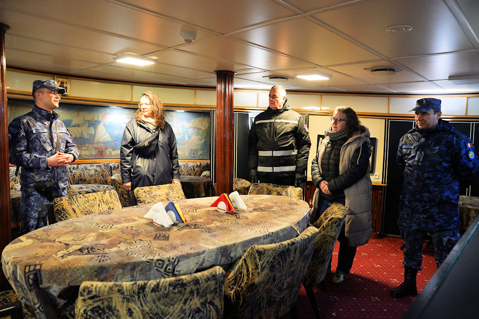Delegația franceză a vizitat atât Academia Navală „Mircea cel Bătrân”, cât și facilitățile didactice ale Școlii Militare de Maiștri Militari a Forțelor Navale. Oaspeții au fost impresionați în mod special de componenta practică a instruirii de care au parte elevii militari români, structurată riguros pe proceduri de firefighting și damage control.