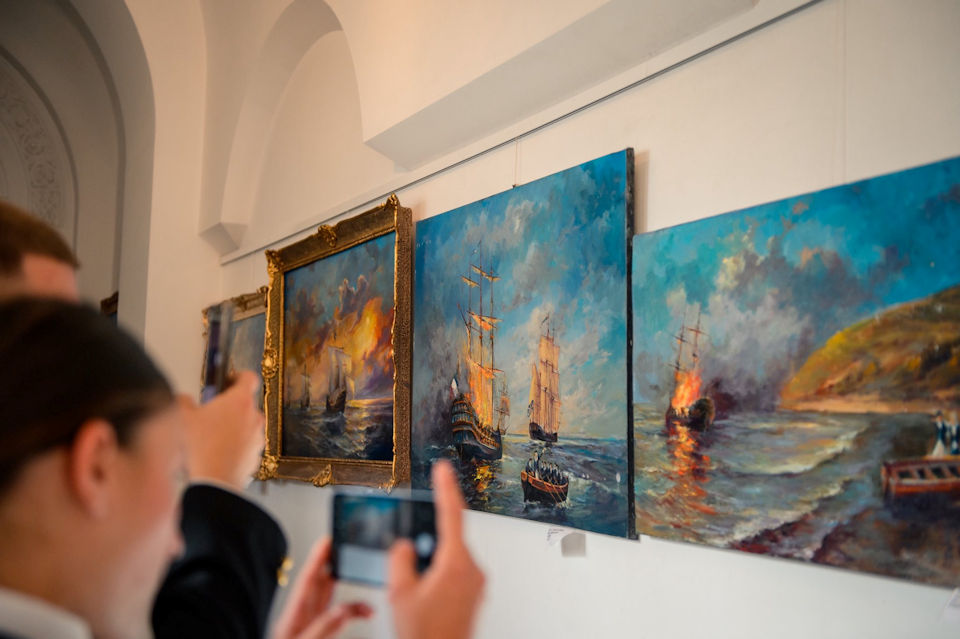 Marea în culorile pictorului-marin Alexandru Ghinea: Elevii Școlii Militare de Maiștri Militari ai Forțelor Navale, prezenți la vernisajul dedicat Zilei Mării Negre, la Muzeul Național Cotroceni